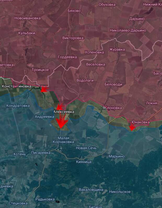 Алексеевка под полным контролем наши сил, противник контратакует малыми группами.