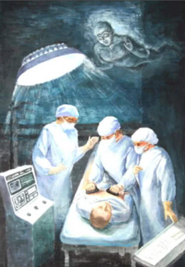 Несмотря на глубокий наркотический сон, доктор Парти ясно осознавал, что его сознание отделено от тела. Стоя над собой, он наблюдал, как хирург разрезал его, а затем медицинский персонал реагировал на запах гноя, разлитого из его инфицированного живота.