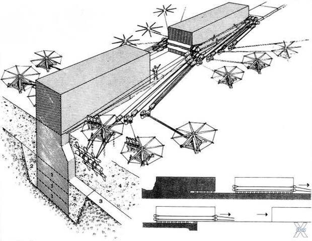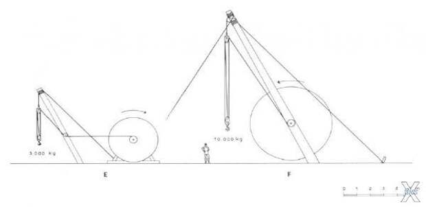 Другой механизм, приведенный в Х-ой книге Витрувием, был приспособлен для транспортировки прямоугольных блоков.