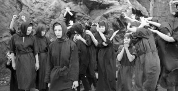 Отправившись из Петрограда на далекий Алтай, они должны там создать коммуну. Что, конечно же, не вызывает восторга у местных жителей. И опять мы видим мистические отсылки. С одной стороны коммунары, которые сами впрягаются в борону, словно проводя обряд пахоты. А ещё есть механически действующие неутомимые косцы, которые стройным рядом двигаются на зрителя. Невольно вспоминаешь про «мрачного жнеца».
