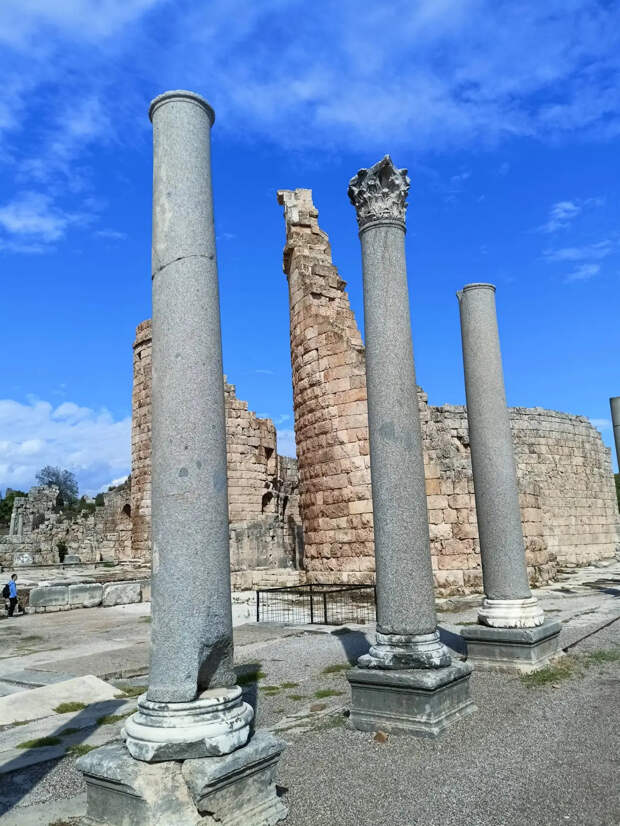 Итак, Перге или Перга — это руины древнего города на юго-западе Турции, в 18 километрах к востоку от Антальи, неподалеку от курортного района Аксу. Легенда сообщает, что его основал знаменитый прорицатель Калхас сразу после Троянской войны. Опасаясь набегов с моря, он заложил его в 11 километрах от морского побережья. Но город, тем не менее, имел выход в море, так как располагался на берегу реки Кестр (ныне Аксу), которая в древности была судоходной. Сначала им владели лидийцы, затем — персы. Ну а в 333 году до н. э. город без боя сдался Александру Македонскому, после чего входил в состав государства Селевкидов, а затем в Пергамское царство. В 262 году до н. э. в Перге родился самый знаменитый его уроженец — математик и геометр Аполлоний.