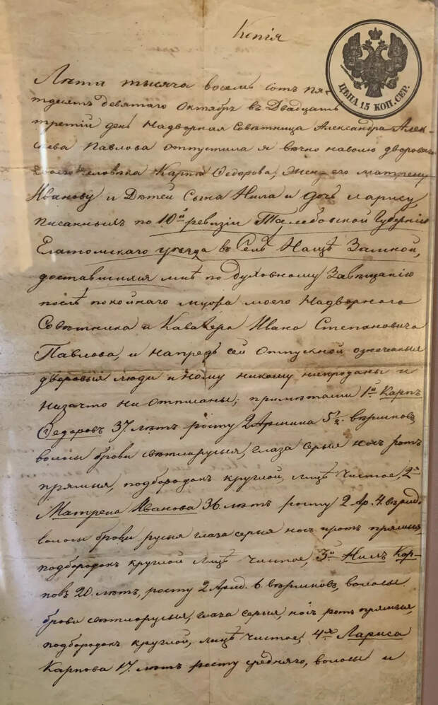Вот этот документ на гербовой бумаге, удостоверяющий переход деда будущего врача в свободное состояние!