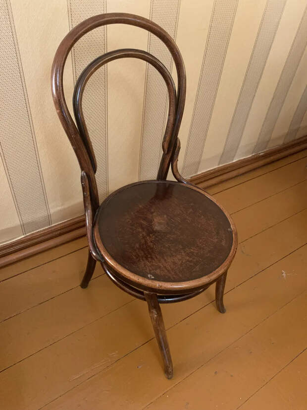 В музее Бурденко обратил внимание вот на этот стул. Точно такие же были и в моем старом доме 1882 года постройки