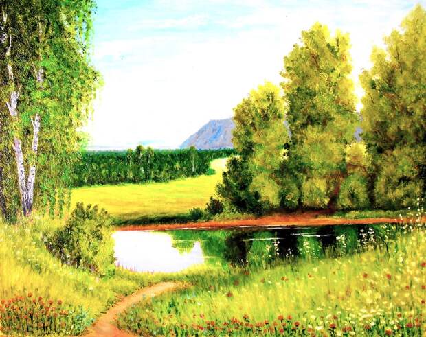 В Тонком мире, человек (дух) наконец-то обретает возможность заняться тем, что его всегда интересовало на Земле, но для этого у него, как это обычно часто бывает на земном плане - нахватало времени, а кому-то и средств. Хотя это, конечно наши отговорки, как и у автора этой статьи, к сожалению на данный момент, не развиваю свои художественные творческие способности, а ведь за это время - с 2018 года, когда отложил кисть, мог бы создать много работ, например, как вот эта моя последняя любительская картина, летний пейзаж.