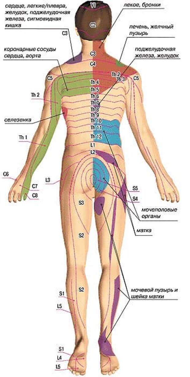 Стимуляция ТТ инициирует болевые проявления несегментарного характера в отдаленных, но характерных от нее зонах: «характерный рисунок» (паттерн) боли. Следует помнить, что ТТ являются патогномоничным признаком миофасциального болевого синдрома МФБС).
