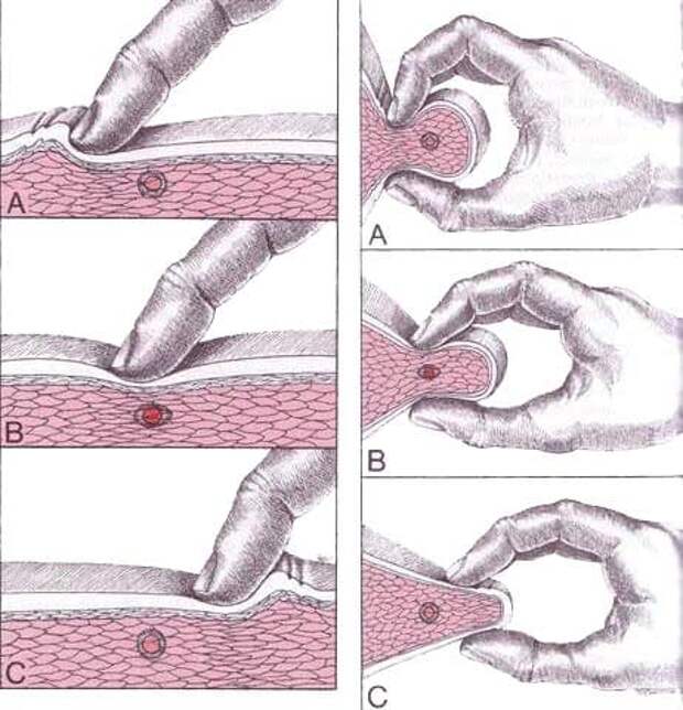 - при надавливании на некоторые участки мышцы наблюдается эффект пульсации.
