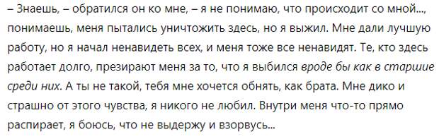 – Просто так... Если бы они хотя бы немного проявляли сочувствие друг к другу, все это могло бы закончиться быстрее. Но нет, они творят подлости, издеваются друг над другом, – закончил он с горечью.