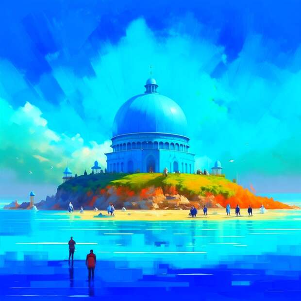 Не буду утомлять вас подробностями, но в конце концов мы подошли к огромному зданию с большим круглым куполом. Внешне это действительно был купол, стоящий на колоннах. То есть купол опирался на круглые, очень высокие колонны. А внутри все сияло тем же удивительным синем цветом. В этом сооружении не было ничего фантастического, просто красивое здание, как и много других у вас на Земле, поэтому не воображайте себе ничего сказочного, все было не так. Синий цвет доминировал, и я почувствовал прилив энергии. Я сразу понял, что хочу писать. Я хотел стать поэтом и выразить свои чувства с помощью пера и чернил.
