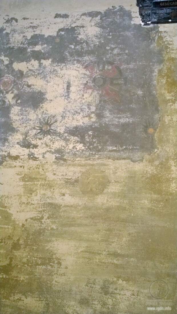 Сохранилось несколько интересных фресок на стенах и третьего уровня храма , различных символов , затертых временем или «чьей-то рукой». Нанесены они так же на деревянном потолке.