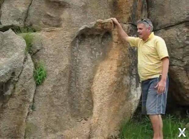 Так, отпечаток гигантской ступни длиной 80 см обнаружен в Танзании. Аналогичной находкой может похвастаться и Америка. Там в Неваде, благодаря прошедшим проливным дождям, открылись несколько окаменевших следов. Расстояние между двумя следами составляло около 2 метров, а длина ступни великана – 50 см. Возраст находки определен — 250 млн. лет.