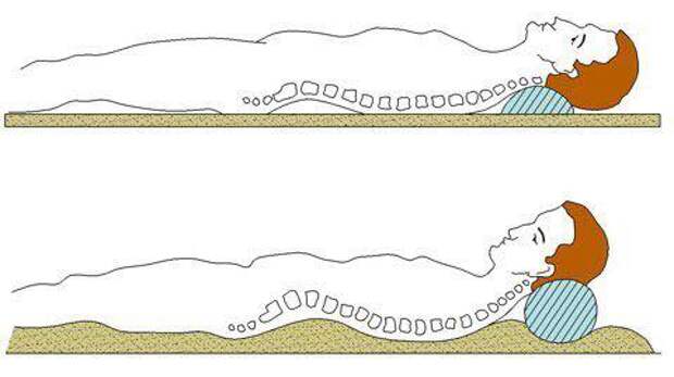 В Японии говорят: «Искривленная шея — признак короткой жизни». Ниши предлагает воспользоваться твердой подушкой валиком, расположившись на ней так, чтобы 3 и 4 шейные позвонки буквально покоились на ней. Следование этому правилу позволит избавиться от головных болей, болезней ушей, носа и глаз. (рис. 1)