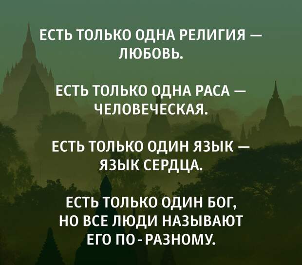 Если у людей будет слепая вера, то они станут фанатиками, исключающими разные точки зрения на этот мир. Поэтому истинная религия включает в себя веру, науку и культуру.