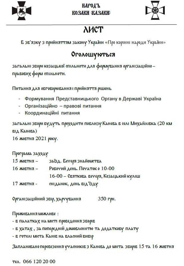 З зв’язку з прийняттям Закону України «Про корінні Народи України» 15-16 жовтня 2021 року оголошуються ЗАГАЛЬНІ ЗБОРИ КОЗАЦЬКОЇ СПІЛЬНОТИ в м. Канів, для формування Організаційно-Правових форм спільноти…
