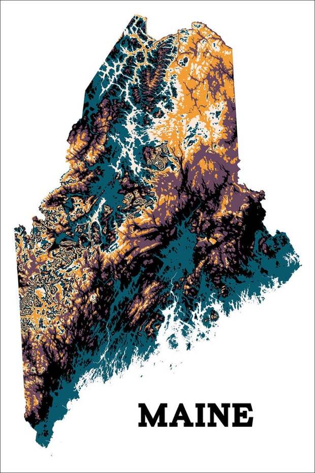 Maine Topography, 200 ft contours, artistic interpretation, 5 repeating colors