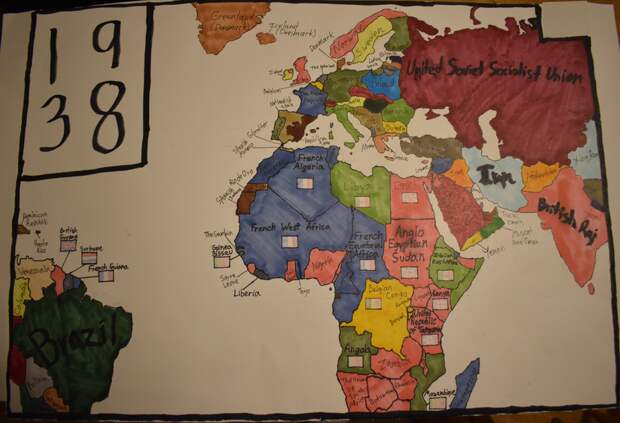 I drew this map for artclass of the world in 1938. They wanted us to draw something.