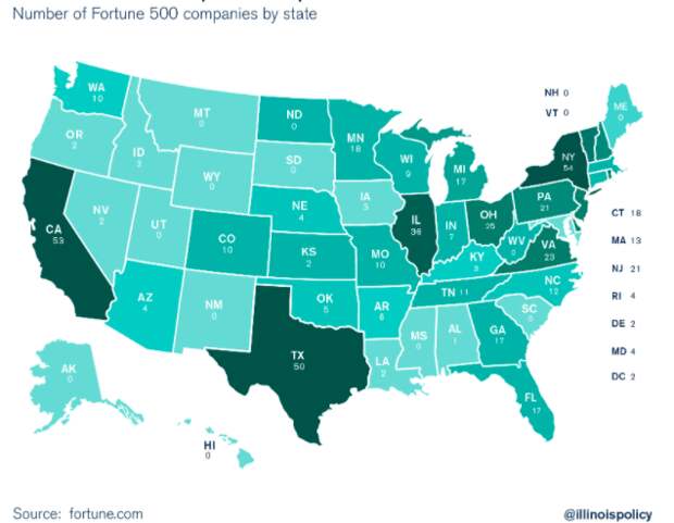 Количество компаний из списка Fortune 500 в каждом штате (2017)