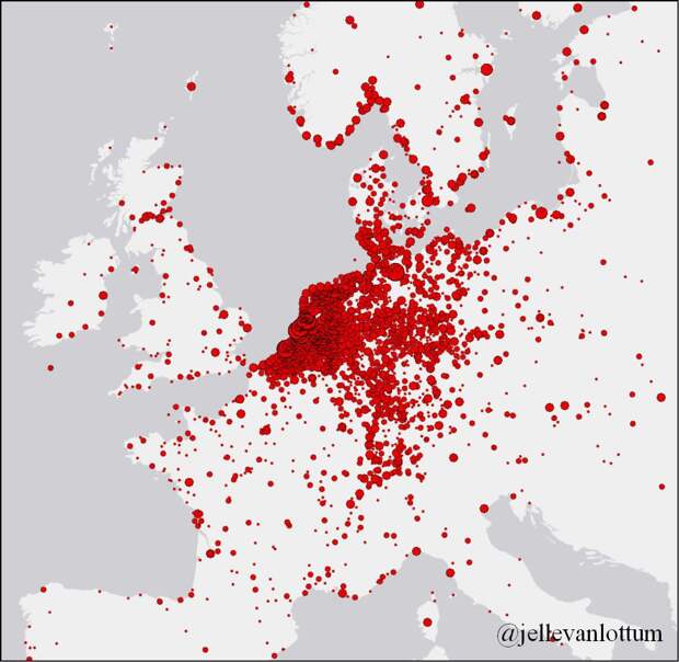 Карта, показывающая район вербовки Голландской Ост-Индской компании в XVIII веке (Источник: Джелле ван Лоттум, профессор истории трудовой миграции