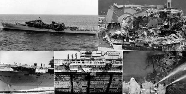 Перворанговые красавцы, боевое ядро флота, авианосцы “Энтерпрайз”, “Франклин”, “Саратога”, “Банкер Хилл”, под воздействием японских атак превратились в плавказармы и/или были использованы в качестве мишеней. Ни на что другое они уже не годились. Их даже не пытались восстанавливать.
