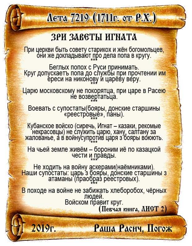 3)Пресловутые «монголы» не оставили на Руси ни одного (!) монгольского слова. Знакомые из исторических романов (например В. Яна) слова «Орда» - это русское слово Род, Рада (Золотая Орда - Золотой Род, т. е. царский, божественного происхождения); «тумен» - русское слово «тьма» (10000); «хан- каган», русское слово «кохан, коханый» -любимый, уважаемый, это слово известно ещё со времён Киевской Руси, так иногда называли первых Рюриковичей, да и в уголовном мире слово сохранилось – «пахан». Даже слово «Батый» - «батька», уважительное наименование предводителя, так в Белорусии до сих пор называют президента.