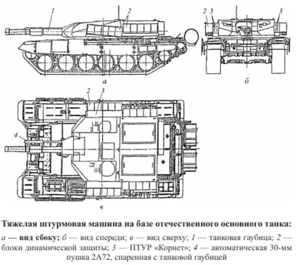 Если посмотреть на саму машину «Штурм» и её известные проектные тактико-технические характеристики, можно обнаружить, что она не очень-то отличается от обычного танка Т-72 или Т-80 по главному калибру. Нет 152-мм орудия, которое могло бы дать весомое преимущество в борьбе с укреплениями и живой силой противника, в особенности с применением каких-нибудь снарядов типа «Краснополь», а также обеспечить возможность стрельбы в пределах больших углов по вертикали.