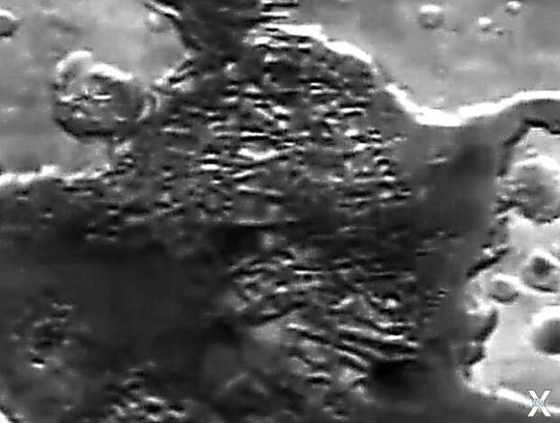 В 1989 году, сразу после исчезновения “Фобоса-2”, независимый английский “Channel-4” обнародовал открытия, сделанные зондом. Среди них был показан довольно симпатичный снимок района Hydraotes Chaos. На котором был изображен вполне земной пейзаж в видимом световом спектре. Но когда инфракрасный фильтр наводился на то же место, прямо под песком появлялся удивительный рисунок.