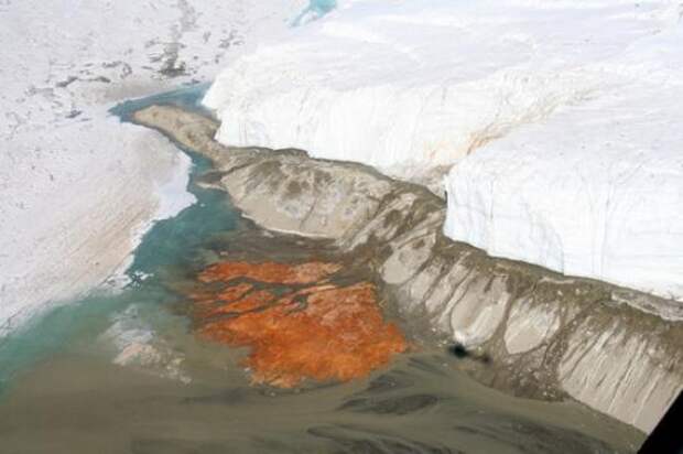Если сияющие береговые линии могут казаться заманчивым волшебством, то ледник Тейлор в Антарктиде отличается гораздо более пугающим зрелищем — вытекающий из него водопад окрашивает окружающий лед в кровавый оттенок.