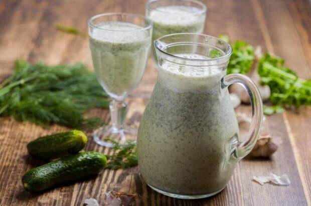 Немного напитка (без огурца, зелени и воды) оставьте на закваску на следующий раз.