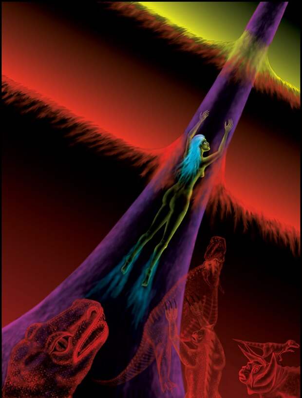 Картина Николая Левашова «Прорыв». На ней показано, как женская Сущность поднимается по каналу на свой уровень после смерти физического тела.