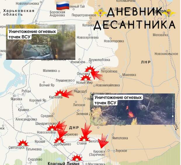 В районе дорог Яровая – Святогорск – Александровка российские беспилотники наносят регулярные удары по маршрутам снабжения противника, аналогичная активность фиксируется под Лиманом. Подразделения ВС РФ продолжают продвижение в районах Дробышево и Новосёловки, развивая успех в направлении Яровой, Александровки, Коровьего Яра и Колодезей. В Новосёловке зачищена юго-восточная часть населённого пункта, продолжаются бои за полное освобождение. Подразделения группировки войск «Запад» освободили село Мирное и дамбу восточнее, обеспечив выход к Заречному. Контроль над этим участком позволяет нашим силам свободно переправляться через дамбу и развивать продвижение западнее населённого пункта, пишет Телеграм-канал KRM РФ.