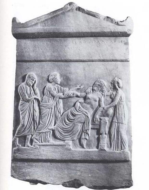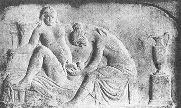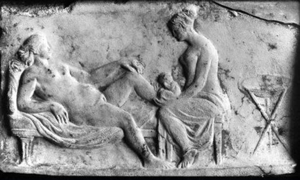 Древнеримское барельефное изображение акушерки (повитухи)