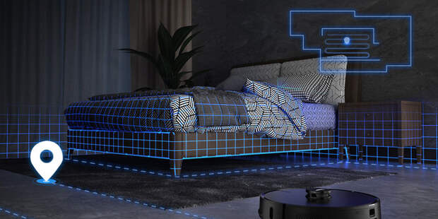 Существуют также роботы-пылесосы, оснащенные системой позиционирования или построения карт. В основе ее работы лежит метод SLAM (Simultaneous Localization And Mapping) – создание ситуационной карты и локализация объекта в пространстве. Сканер, установленный на пылесосе, проверяет пространство вокруг и по отклику своих датчиков формирует карту. Преимущество этой функции еще и в том, что она позволяет роботу построить оптимальный алгоритм уборки.