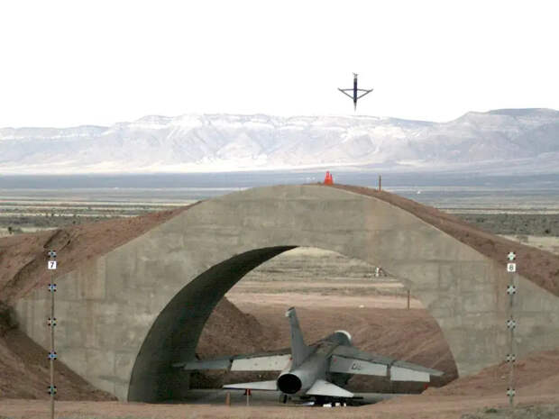 Бомба малого диаметра и цель в виде авиационного укрытия во время испытаний