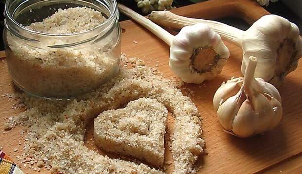 Пряно-чесночную соль можно развести несоленым бульоном, кумысом, сметаной, кефиром, натуральным йогуртом и подавать на стол в качестве соуса или самостоятельной закуски к бутербродам, лавашу, гренкам и прочим хлебо-булочным продуктам.