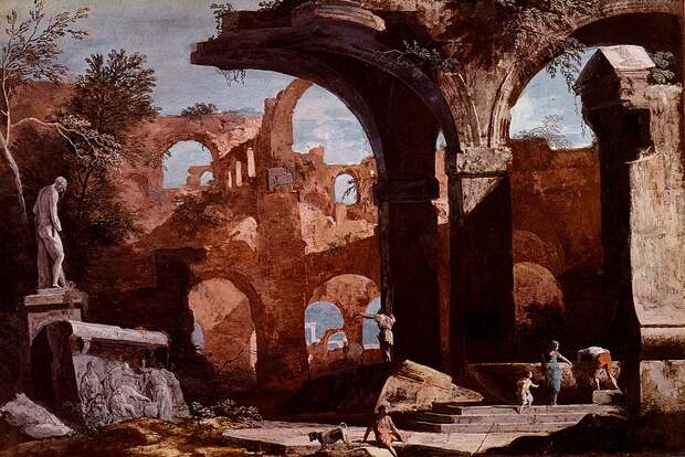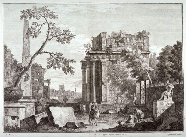 Hubert Robert,Panini Giovanni Paolo ну и конечно Piranesi Giovanni признанные мастера живописи.Однако были малоизвестные у нас живописцы так же рисовавшие разрушенное наследие прежних цивилизаций.