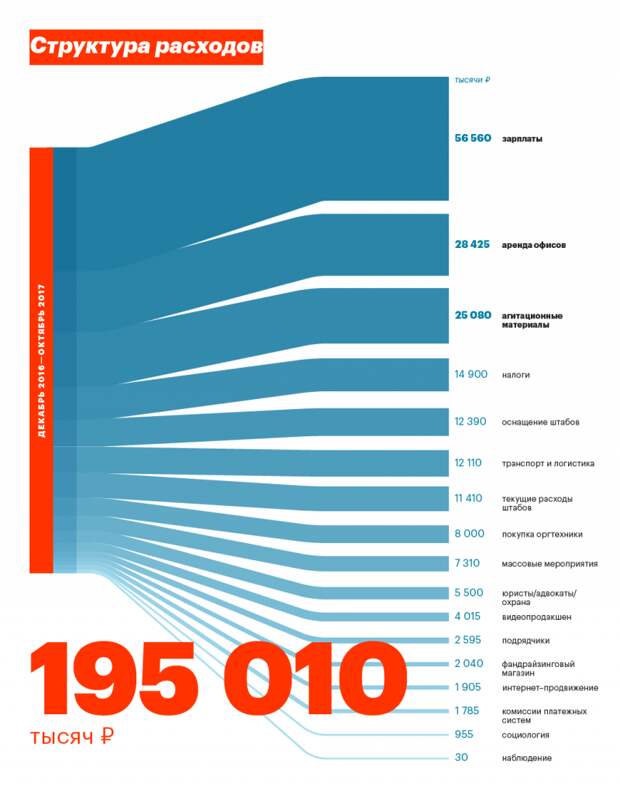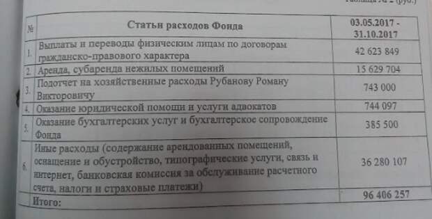 А вот до фонда «Пятое время года», с которого и оплачивалась кампания Алексея, добралось уже только 96,8 млн. рублей: