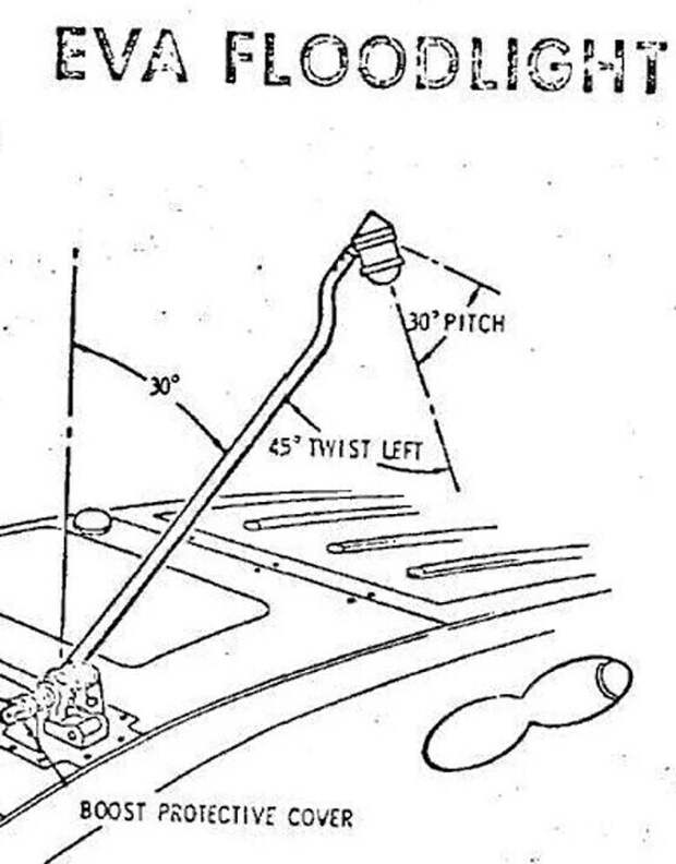 Как оказалось, после просмотра оригинальной видеозаписи полета был сделан неожиданный вывод: на этом фото изображен... прожектор EVA.