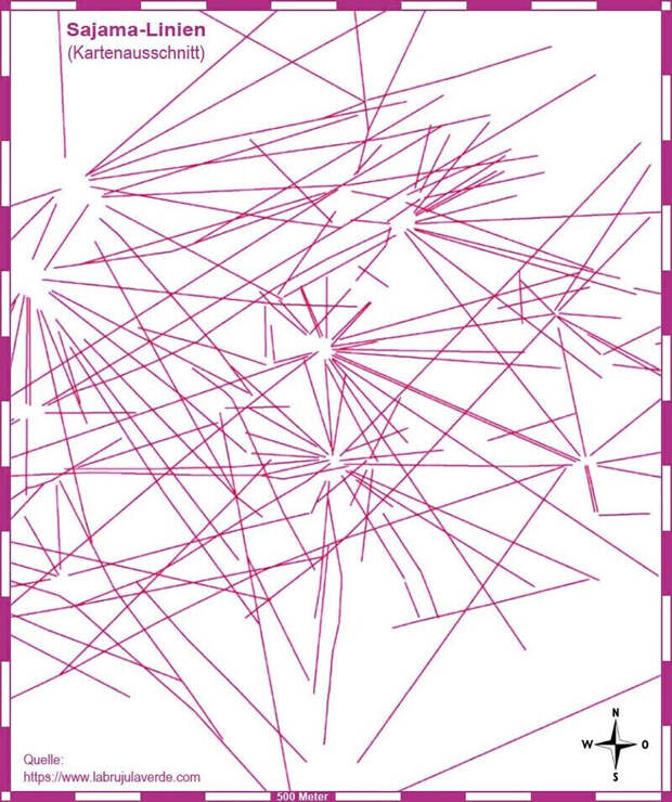 Линии Саджамы (Сахамы) - это сеть из нескольких тысяч практически прямых дорожек, которые непрерывно, независимо от ландшафта, тянутся по земле, подобно линиям Наска. Ученые считают, что этим линиям не менее 3000 лет.