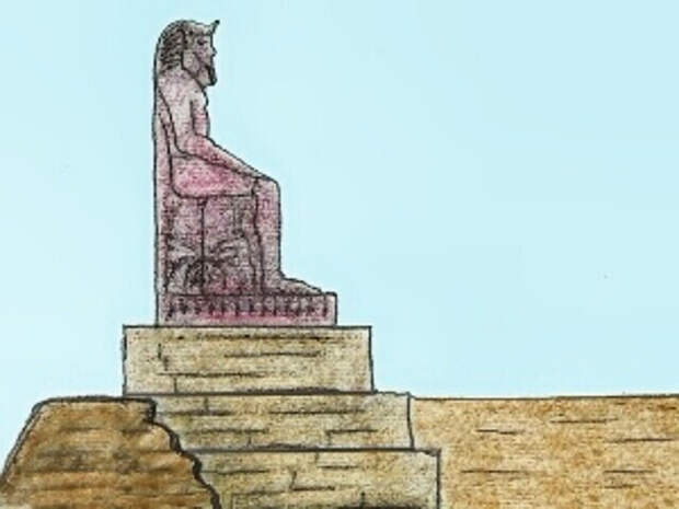 Другой исследователь - Ф. Питри предполагал что во время разлива озера колоссы подтапливались водой, что издали можно было принять за полузатопленные пирамиды со статуями. Дело в том, что на берегу современного озера находятся развалины Корс Фараун - Трон Фараона. Предполагают, что в прошлом это были основания двух колоссальных статуй Аменемхета III. Флиндерс Питри даже нашел осколки от этих статуй и сделал предположение, что их высота вместе с пьедесталами составляла от 12-ти до 18-ти метров. Кстати, на постаментах заметны следы водной эрозии.