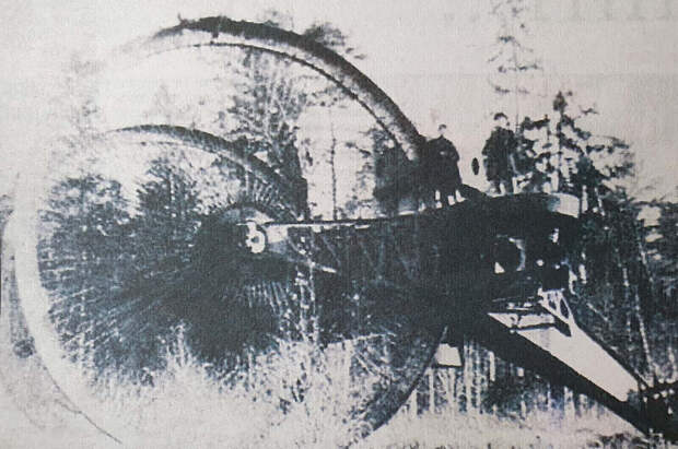 В лесу недалеко от деревни Орудьево (в Подмосковье) можно найти заросшие колеи от огромных колес (искать лучше летом), а также земляные валы, на которых осуществлялась сборка гигантского танка, который разработал инженер Николай Лебеденко на рубеже 1914-1915 годов. Этот танк так и назвали "Царь-танк". Длина танка составляла 18 метров, ширина - 12, а многочисленные пушки и пулеметы, располагались на высоте порядка 8 метров над землей. Это был настоящий монстр. Не удивительно, что местные жители с тех пор так и называют тот лес, в котором собрали это металлическое чудище - "лесом танка".