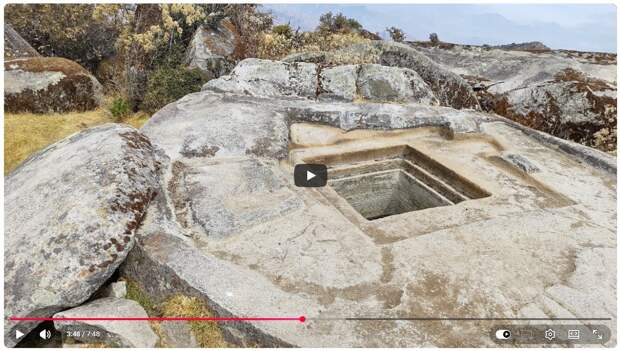 Есть небольшое обзорное живое видео, которое дает представление о об особенностях этих объектов - небольшая изрезанная непонятным инструментом скала, вокруг которой и расположены эти странные углубления, некоторые имеют каменные крышки в виде тонких плит.