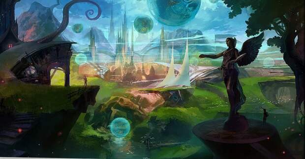 Что же я увидел? Мы оказались перед большим зданием с несколькими этажами. Архитектурно оно было просто, ничего особенного. Но глаз привлекали большие окна, которые были задрапированы легкой прозрачной тканью. В здание входили какие-то люди. Несмотря на то, что их одежда была практически одного цвета – от светло-голубого до яркого, насыщенного с переходом в легкую бирюзу, в сочетании с лиловыми и бежевыми оттенками, они не казались безликими. Напротив, в их движениях чувствовалась особая гармония.