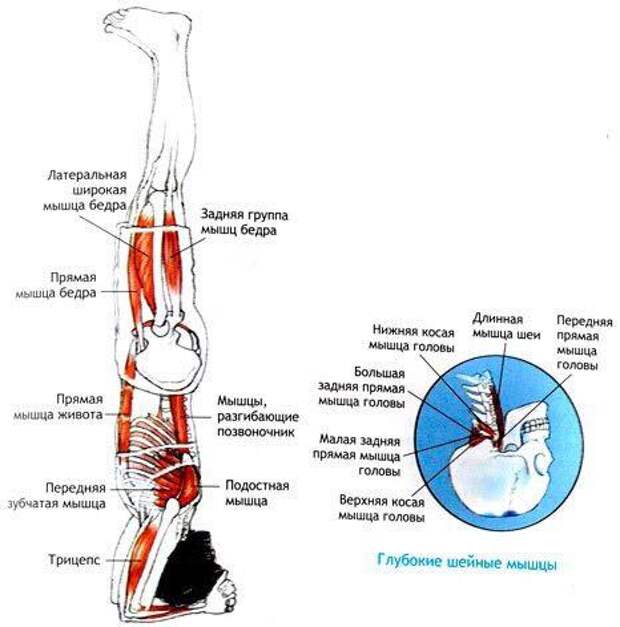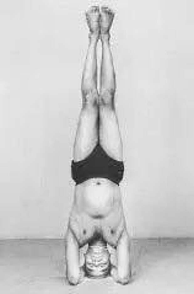 Вытяните ноги вверх и стойте на голове, так чтобы все тело было перпендикулярно полу.