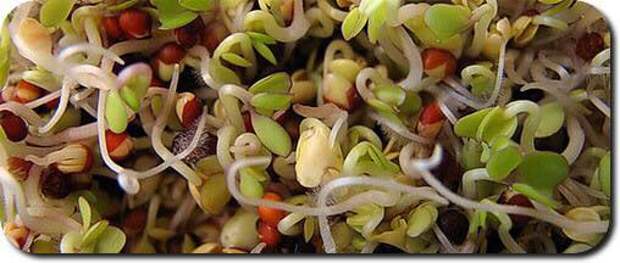 Обычно проращивают нут, так называемый бараний горох, в котором много витаминов А, С, группы В; есть марганец, кремний, железо, бор, калий и кальций; много клетчатки, углеводов, высококачественных белков и аминокислот.