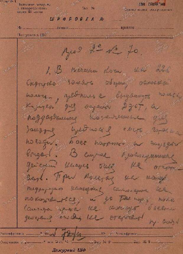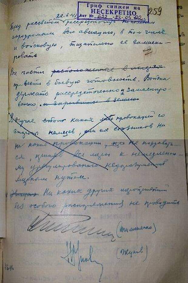 В 23-45 черновик попал в ШО. Машинистка к 23-50 отпечатала копии. Одну копию унесли С. Буденному, а черновик Директивы отправился к шифровальщикам.