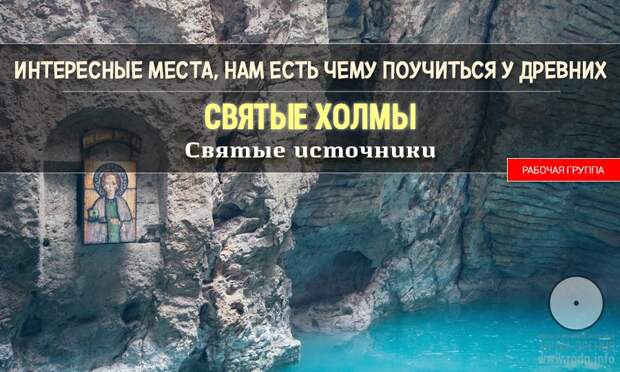 Работая над темой «Святые холмы», при нахождении всё новых и новых «интересных» холмов, курганов, связанных с древними языческими капищами, что называется, всплыл факт наличия рядом с ними источников, озёр, рек. По всей Земле тысячи источников (родников, ключей), они, как артерии единого организма, поддерживают жизнь Земли и всего живого на ней.