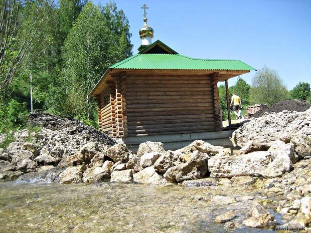Недалеко от источника прямо над речкой установлена деревянная купель.
