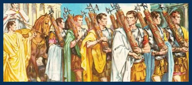 Историк Ливий писал: отец-основатель Ромул принял царский сан от двенадцати ликторов, следуя этрусским традициям. Курульное кресло и «toga praetexta» тоже были среди регалий римских магистратов, как в Этрурии. Даже запретив институт «царства», став Республикой, — римляне вручили ликторам «фасции» этрусков. Пучки прутьев с топориками, которые несли перед жуть какими демократичными консулами.