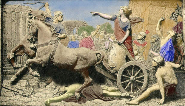 Римские историки с недоумением перечисляют другие эпизоды о молодых Тарквиниях, их женах. Непритворно ужасаясь власти этих женщин. Жена Тарквиния Великолепного, упрямая и жестокая Туллия, в династический кризис… направила свою колесницу на Форум. Переехав по дороге тело своего мертвого отца. Заставила всех слушать себя. Провозгласила своего супруга — царем. Никто пикнуть не посмел. Хотя больших батальонов за ней не маячило. Сила традиции!