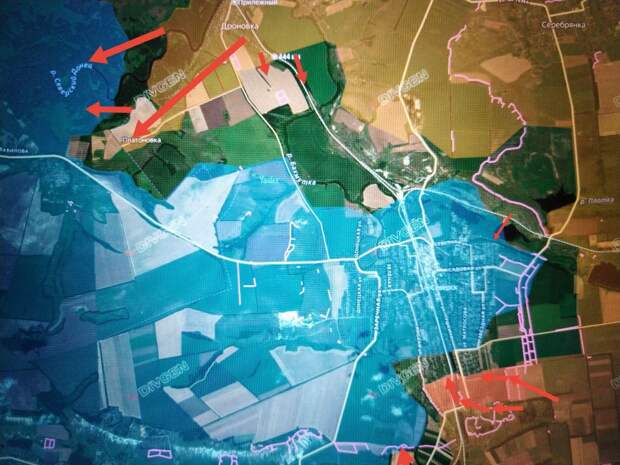 Наши подразделения ведут бои на северной окраине Северска в районе пруда (ставка) Поселковый и северо-восточной части улицы Северная. С юга ВС РФ взяли большой и хорошо оборудованный укрепрайон противника у юго-восточной окраины Северска и продвинулись в городе до улицам Южная и Родионовских Патриотов. Бои также идут в центре Звановки, пишет военкор Юрий Котенок.