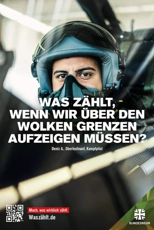 «Что имеет значение, когда нам нужно высоко над облаками охранять границы? Дениз А., обер-лейтенант, боевой пилот. Делай то, что действительно важно»
